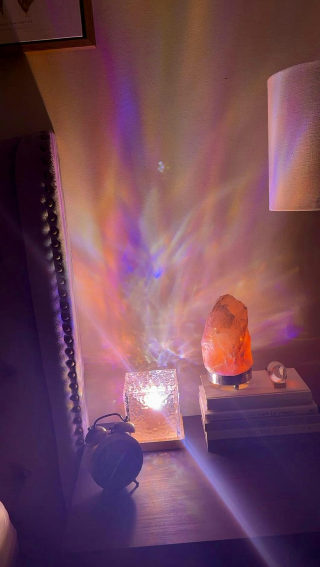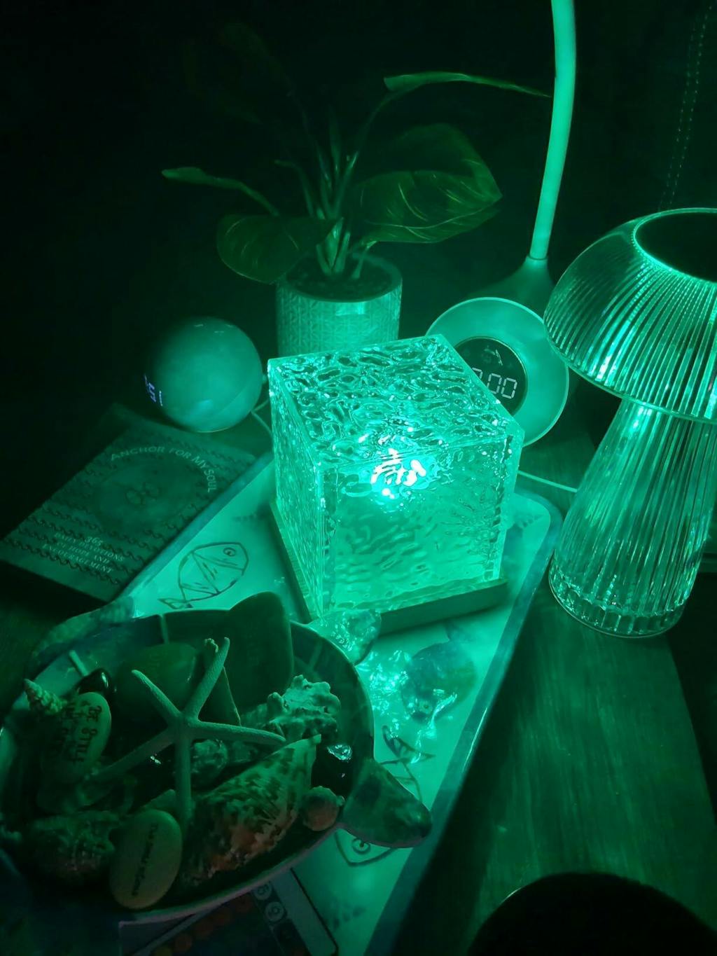 Turn your ceiling into an ocean of calm. Transform your room from a static space into a moving sanctuary. The Aurora Cube uses a rotating crystal mechanism to refract light, projecting a dynamic, flowing water ripple effect across your walls and ceiling.